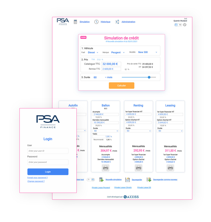 Développement d’un outil web de simulation de crédit pour le groupe PSA Finance / Stellantis Belux (Peugeot/Citroën/DS/Opel/Fiat/…).